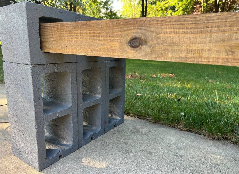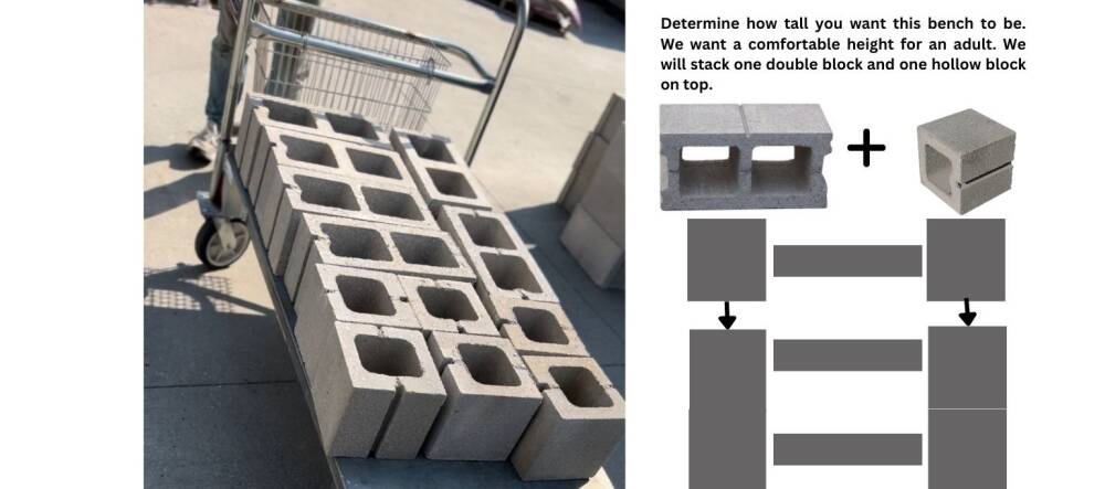 We recommend assembling the bench where you want it. These can be quite heavy to move. Use a caulking gun to attach all the loose pieces together. Thread 4x4 seat into each hallowed block as shown. You can glue the wood onto concrete, but it is not necessary.