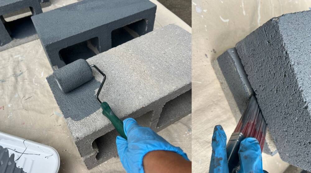 When dealing with large and expansive concrete surfaces, as well as inside concrete blocks, it is recommended to use a combination of rolling and brushing to ensure proper adhesion. Though spray paint is an option, it may necessitate more paint. Opting for porch and floor specialty paint is perfect for enduring outdoor weather conditions. This type of paint is available at Sutherlands in various pre-mixed colors, this for our project, we have chosen Iron Gray. Let dry as instructed by the type of paint.