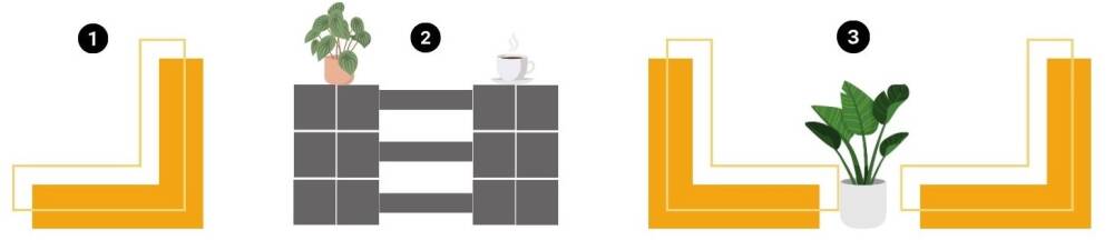 You can turn this into sectional pieces by adding another section on either side (pic 1). Perhaps you can add another layer of bricks to make an end table on the sides (pic 2). Imagine all the possibilities (pic 3)!