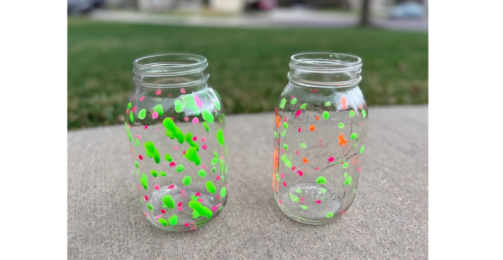 First thing to keep in mind when choosing the paint brushes, you need to make sure it is long enough to reach the very bottom of the jar. You might want to choose a very small brush tip. We recommend a different brush for each color so you can avoid rinsing them off. That is totally up to you. Create your own patterns and designs. Allow paint to dry.