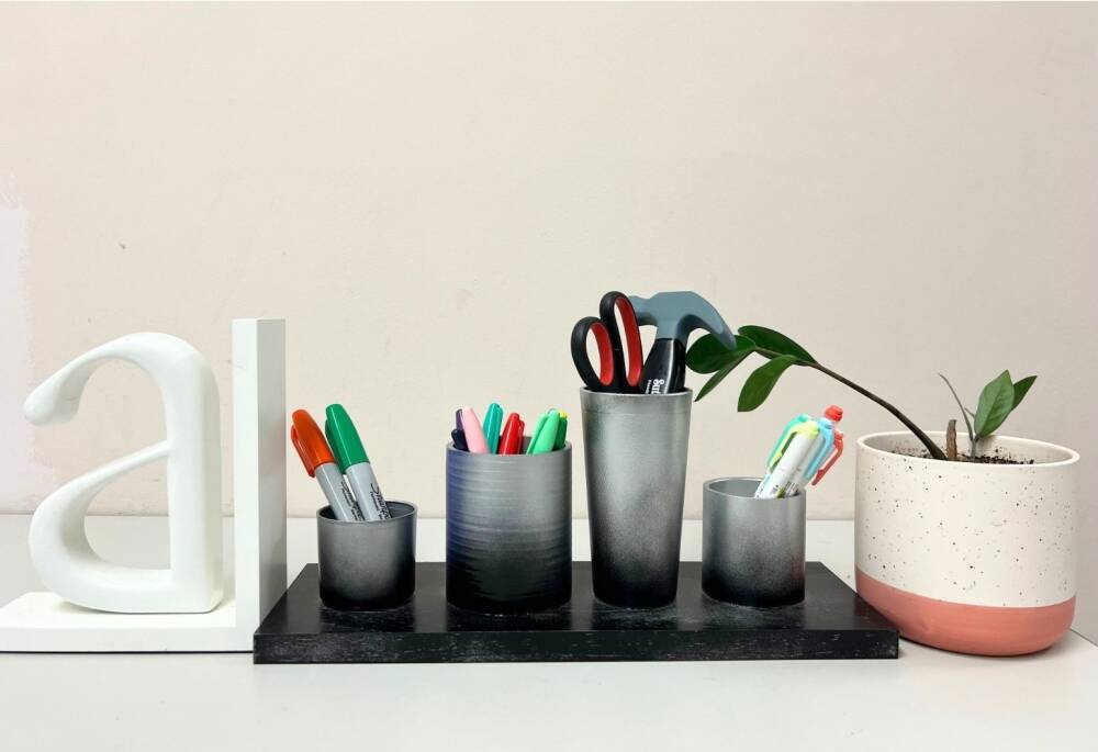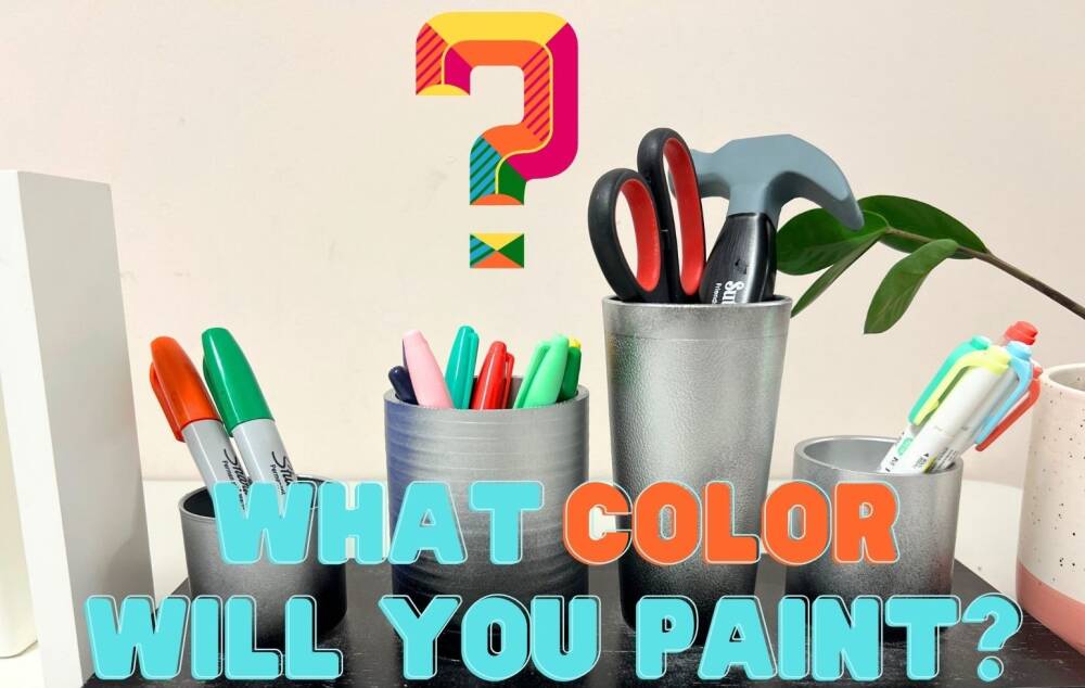 Can you guess what this 4-holder table stationary is made from? It is amazing if you look around your house, how many empty unused, trash bound and empty container are laying around, especially those home improvement scraps. Keep reading for the reveal of what they are!