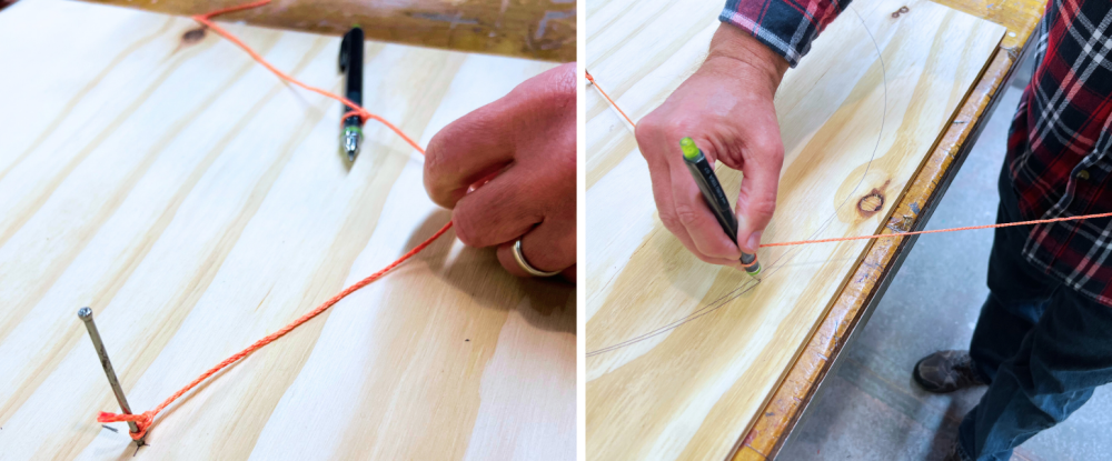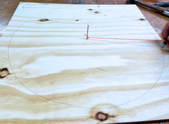 Determine how big you want to make the circle. We planned to make it big enough to use up the precut 2x2 plywood.