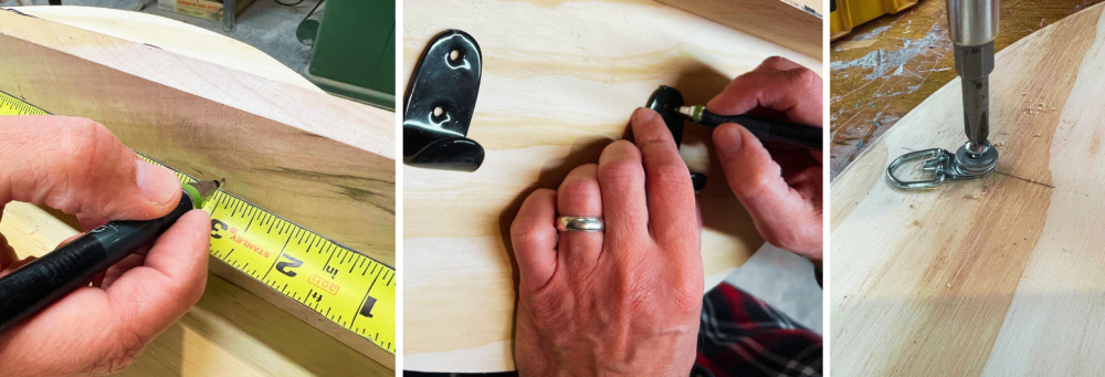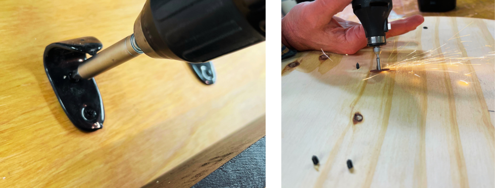Next, install all the hardware. Many hardware comes with the nail that might be too long depending on how thick your lumber is. You can always get shorter nails or use rotary tool to cut it off (careful, the broken part will be hot to touch).