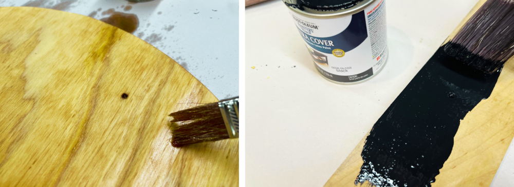 Apply paint, stain and let dry overnight. You can have fun with different color combos too.
