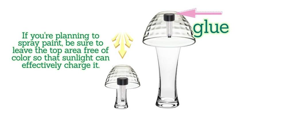 Unscrew the base of the solar lights. If you have a short enough vase, you may be able to place the light directly in the base and secure the cap without adhesives. For taller vases, apply clear glue to attach the solar light to the bowl.