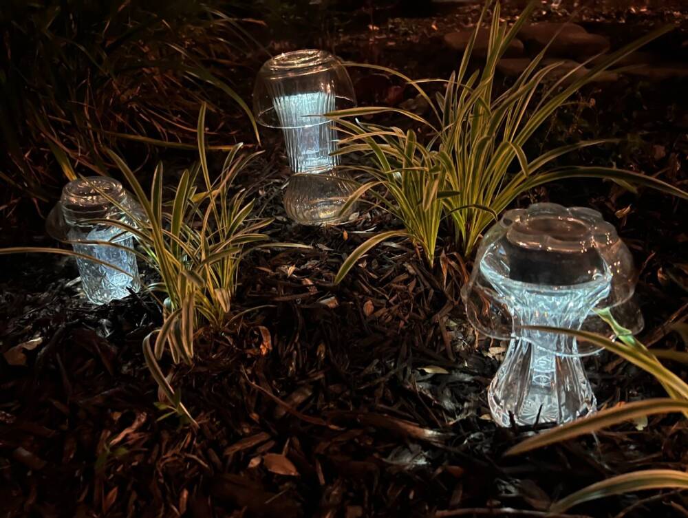 When choosing your vase, ensure that the opening is large enough to fit the solar lights you plan to use. Don’t forget to test them out! A slender vase paired with a wide bowl works wonderfully. Let the shape of a mushroom inspire your selection!