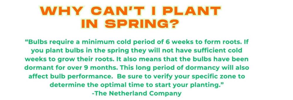 The best time to plant them is in the fall, just before the first frost. Many asked if they can wait until spring to plant. Fall season allows for a longer time for roots to delvelope.