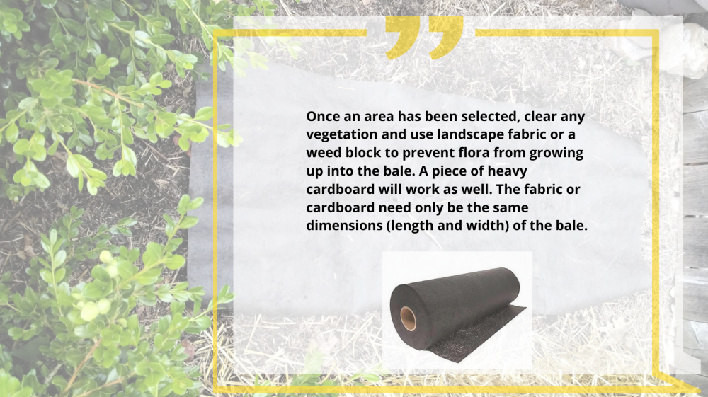 As with a traditional garden, choosing a site is paramount to your success. For straw bale gardening, the site will need to receive six to eight hours of direct sunlight. Also, the area needs to be level and clear.