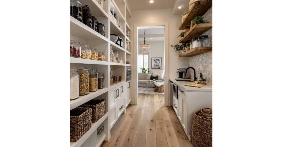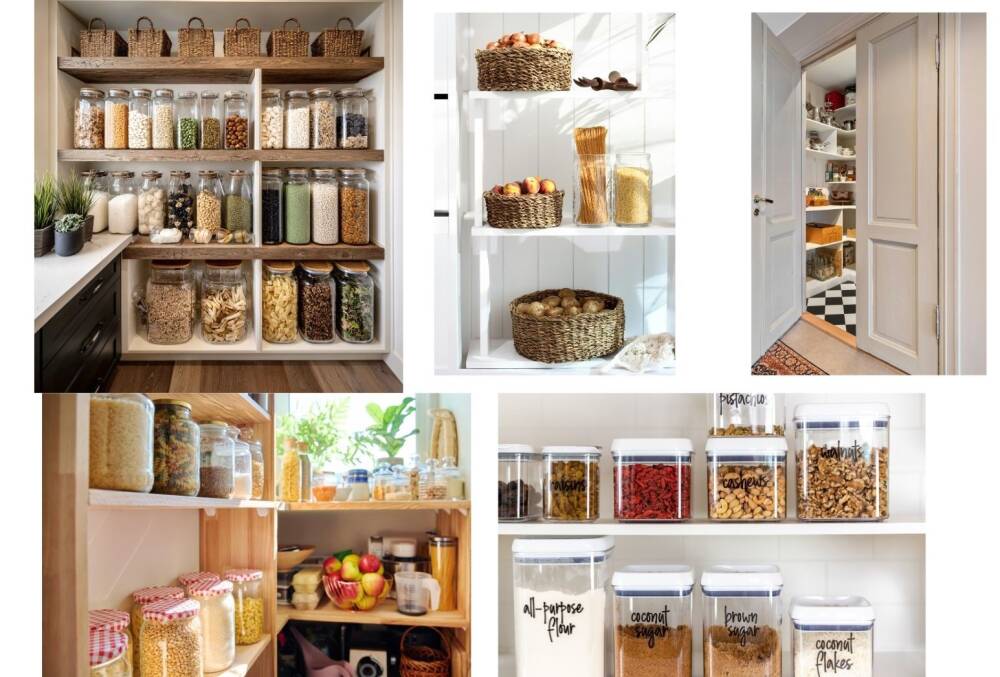 Let’s take a moment to explore your pantry. If you have a walk-in pantry, begin by checking for any old or expired food items that may have been pushed to the back of your shelves. If you don’t have a walk-in space, consider adding a standalone hutch or armoire, or opt for open shelves.