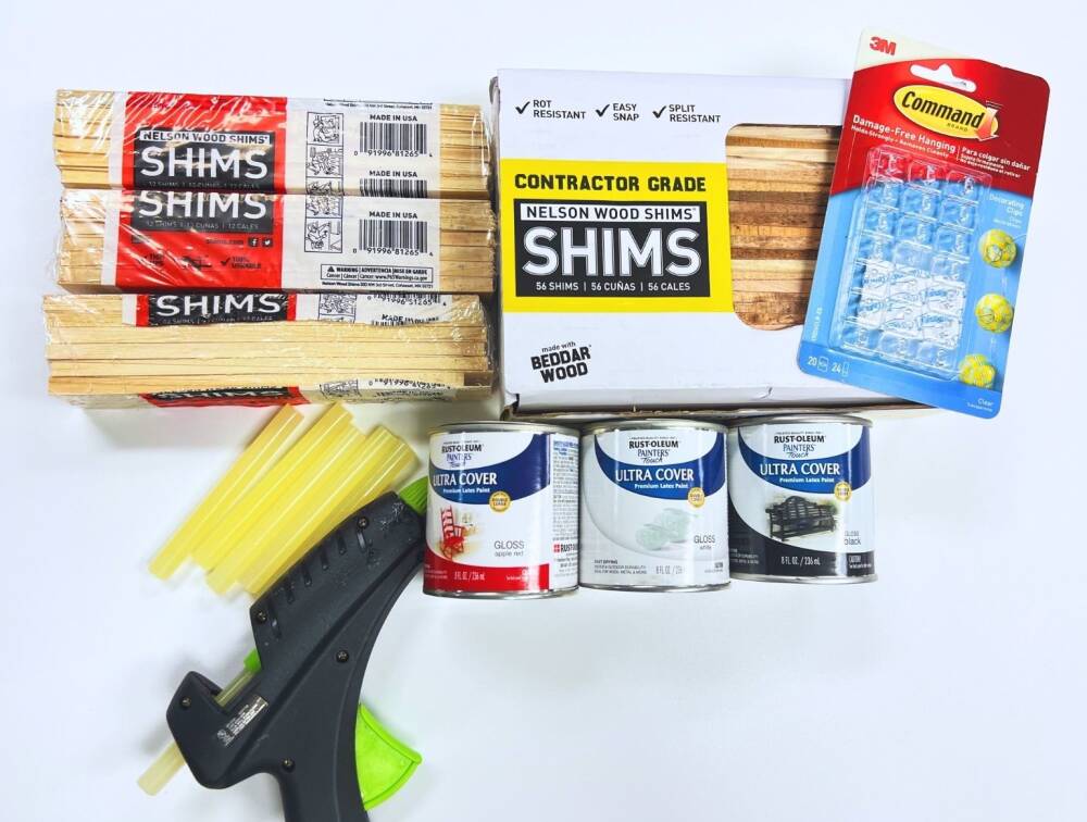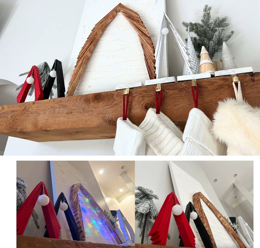 We made different size trees out of the smaller shims. They are thinner and perfect for making a mini tree village. We love this project as you can make it as small or as big as you want.