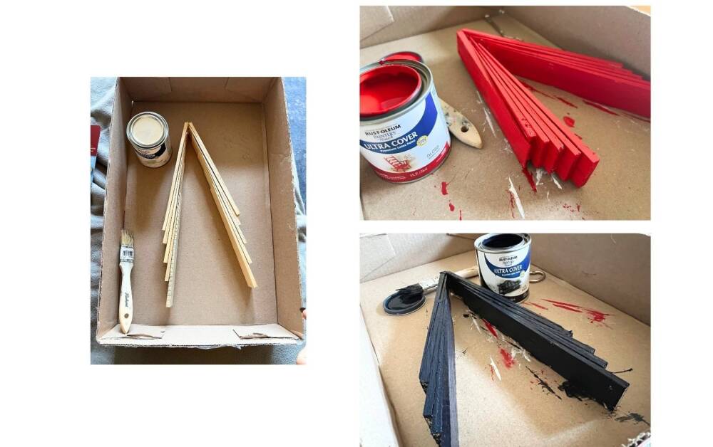 You can easily use spray paint for this project. It is rather cold outside here, so we opted for applying gloss paint indoors.