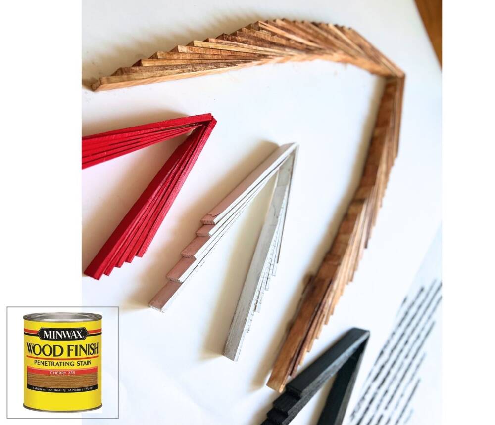 For the bigger tree, we used the contractor wood shims. They are bigger and have very neat color variation. For this big tree, we used an entire box of them. It is quite impressive!
