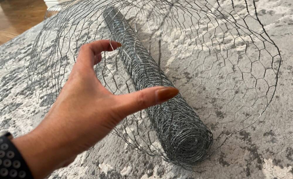Here is a tip to get the right size piece that will fit your dining table. Roll out the wire and form a cylinder shape appropriate for your display.