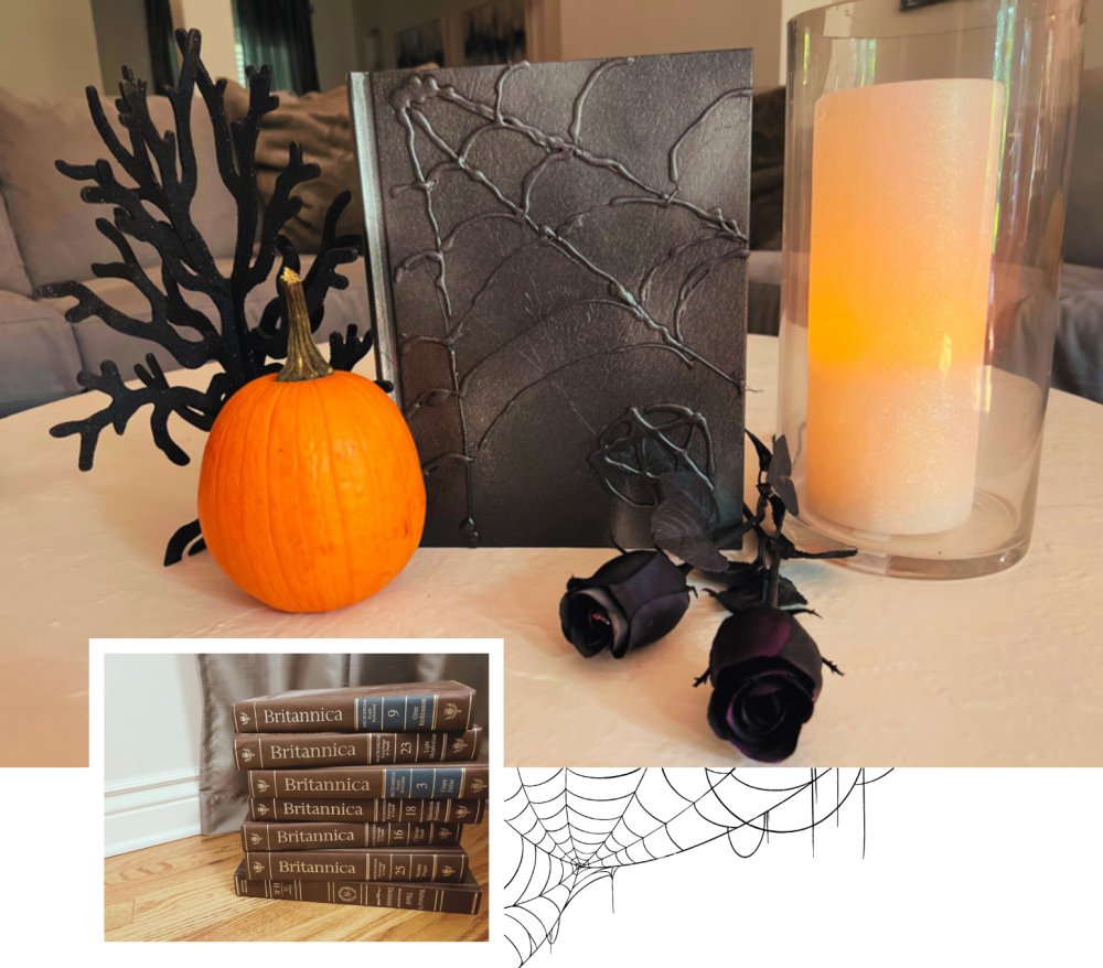 Looking for something to do with your old Britannicas/ Encyclopedias? We have a way to repurpose them and such a perfect time for getting your home decorated with a spooky vibe.