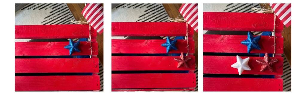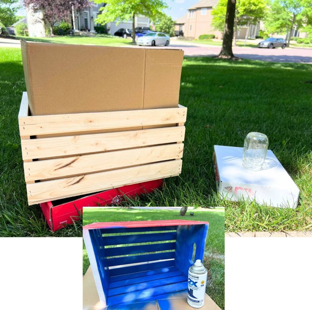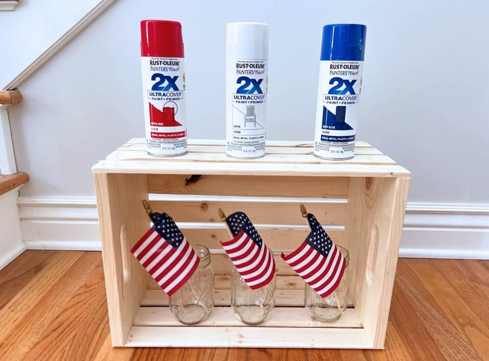 First, determine the pattern you’d like to use for your red, white, and blue color scheme. The simplest approach is to apply one solid color to each side. If you're feeling more creative, you can use masking tape to paint each slat of the crate, creating a striped effect.