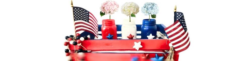 This crate will be perfect for your July 4th picnic and family get together. It can double as a drink station and a silverware caddy. You might even use it as a summer fun bucket, filled with toys, blankets, bug spray, and bubbles for the kids. Consider adding lovely summer flowers to create a patriotic table display. Wishing you a fantastic summer from all of us at Sutherlands!