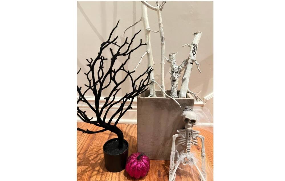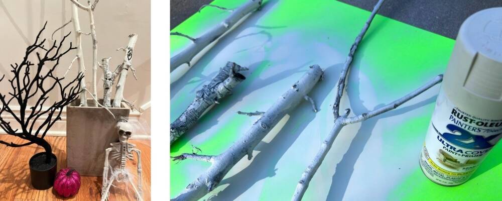 Now it’s time for the hunt. Allow the kids to use their imagination. Tell them to imagine a face on it! Can they visualize the face, the mouth and make these branches come alive!? Give them a good coat of white paint. Draw faces with sharpie or craft paint. Display it however you like! We stuck ours on a vase. You can glue them onto a piece of 2x4 perhaps. Haunting forest!