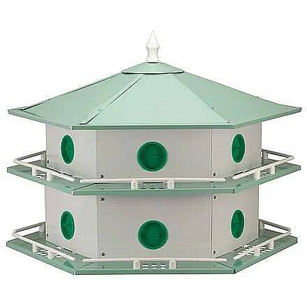 This Heath deluxe 12-room purple martin house is made of tough, long-lasting lightweight aluminum for years of service. Hexagonal design is efficient and esthetically pleasing.
