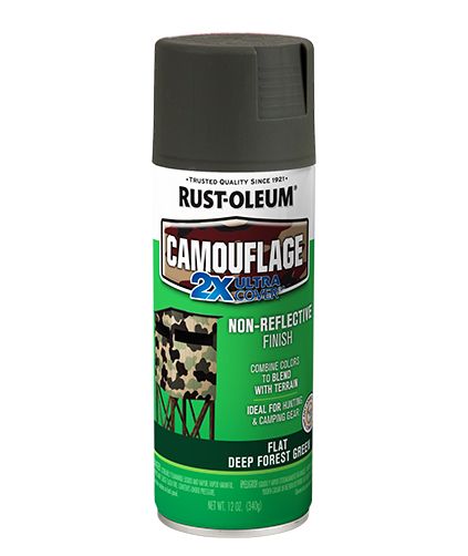 Rust-Oleum® Specialty Camouflage Spray provides a non-reflective, ultra-flat finish for maximum hiding. Applies to metal, wood, plaster or masonry. Offers long-lasting protection when applied on top of primer.