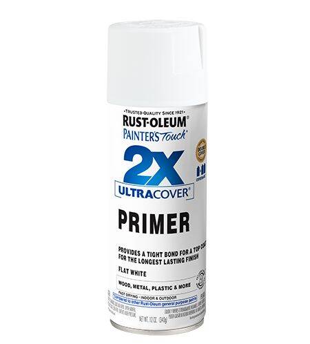 A coat of spray primer is a great way to set the stage for a successful spray paint project. Rust-Oleum® Painter's Touch® 2X Ultra Cover® Spray Primer helps prevent the original colors from showing through the topcoat of spray paint. It forms a tight bond to surfaces so your paint adheres and helps prevent chipping, cracking and peeling.