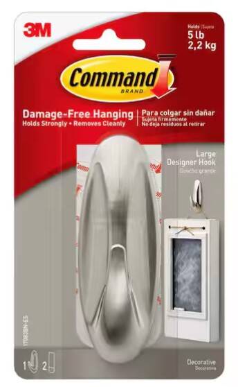 Command™ Decorative Hooks come in a variety of styles - from sophisticated to fun and playful - giving you options for every room and every person in your home. Using the revolutionary Command™ Adhesive, Command™ Decorative Hooks hold strongly on a variety of surfaces, including paint, wood, tile and more. Yet, they also come off cleanly - no holes, marks, sticky residue or stains - so you can take down and move your Command™ hooks as often as you like. Reusing them is as easy as applying a Command™ Refill Strip, so you can take down, move and reuse them again and again! Contains 1 hook and 2 strips. Holds up to 5 lbs.