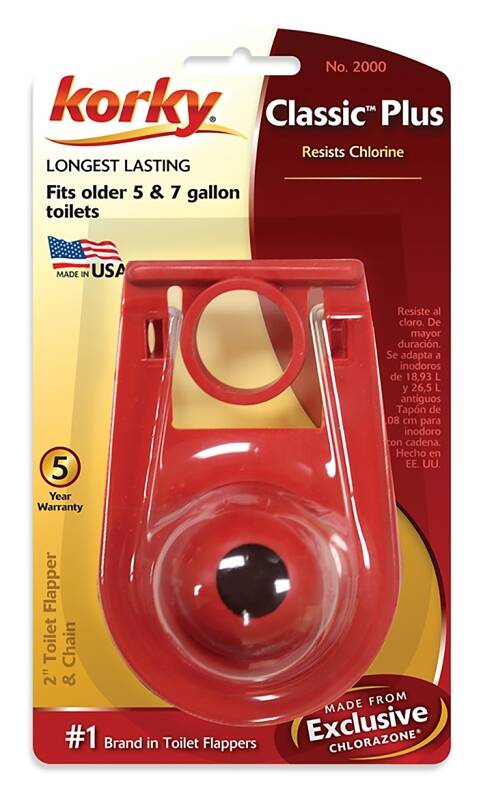 The Korky Plus™ classic flapper is designed to stay open longer to fit old 5 and 7 gpf toilet models. The toilet flapper collar allows for attachment to brass flush valves and can be removed to fit plastic flush valves. The exclusive longest lasting red rubber resists chlorine, bacteria, city water treatment, hard water and well water. Made of flexible rubber for a tight seal and easy to install.