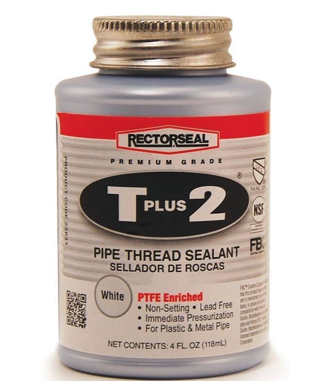 Rectorseal T Plus 2® pipe thread sealant is a non-setting, multi-purpose compound which contains PTFE, plus synthetic fibers to create a stronger seal. Recommended for use on threaded galvanized steel, iron, brass, copper, aluminum, stainless steel, polyethylene, fiberglass reinforced, PVC, CPVC and ABS pipe.