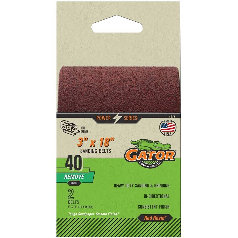 Gator Aluminum oxide sanding belts are designed to fit the most popular portable belt sanders offered today. These industrial-quality belts have long set the standard for quality and value. From the durable red resin bonding system, it resists heat build-up and humidity for longer life to the bi-directional flush joint that runs smoothly in both directions. Gator sanding belts are your first choice for your next project calls for using your portable belt sander.