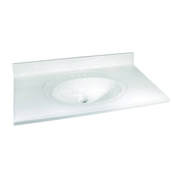 22-Inch X 37-Inch White Cultured Marble Vanity Top
