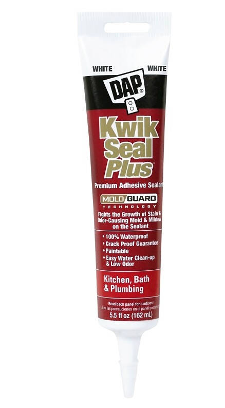 DAP® KWIK SEAL® Plus® kitchen and bath siliconized adhesive sealant contains Microban® antimicrobial product protection to fight the growth of stain and odor causing bacteria, mold and mildew on the sealant. The advanced Microban® protection neutralizes bacterial and fungal growth where it lives and breads. This means the sealant is easier to keep clean and stays cleaner longer. This specially formulated siliconized adhesive sealant provides excellent adhesion and flexibility for a 100% waterproof and crack-proof seal around tubs, sinks, showers, countertops and fixtures. KWIK SEAL® Plus® is easy-to-apply and tool, paintable, low in odor and cleans-up easily with water.