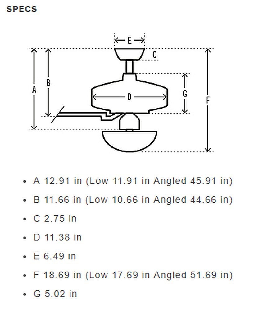 | Downrod | Includes 3'' and 2'' downrods to ensure proper distance from the ceiling and optimize air movement at your preferred blade height |
