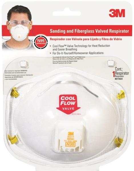 3M™ Sanding and fiberglass valved respirator is used for non-harmful dusts from sanding, grinding, sawing and insulating particles. Featuring 3M™ Cool Flow™ valve technology, the 3M™ sanding and fiberglass valved respirator offers heat reduction and easy exhalation. Easy-to-use and comfortable, the 3M™ sanding and fiberglass valved respirator is a great choice in respiratory protection for both the professional and the DIYer.