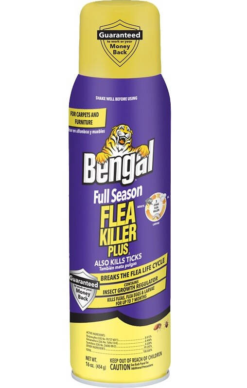 This 16 oz aerosol spray is a highly effective, three-stage flea and tick killer, targeting fleas a tall stages: adult, larvae and eggs. It features an insect growth regulator that provides long-lasting protection, preventing flea re-infestation for up to 7 months (210 days). Ideal for pet owners, this spray can be applied to pet bedding to keep your pet's space pest-free. Designed for use on carpets and furniture, it penetrates deep into rugs, drapes, upholstery and floor cracks, without staining when used as directed. For added convenience, the spray works in both upright and upside-down positions, allowing easy-access to hard-to-reach areas. Its powerful formula contains 0.3% sumithrin for great killing power, 0.4% tetramethrin for fast knockdown and 0.015% pyriproxyfen, an insect growth regulator that disrupts the flea lifecycle.