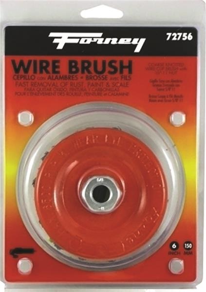 Ideal for fast, heavy-duty cleaning of large surfaces, removing weld scale, rust, burrs, etc. Designed for use in high speed air and electric tools, both portable and stationary machines. Arbor: 5/8 in - 11 in ; Wire size; .012 (.304mm). Maximum rpm: 6,500.