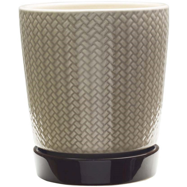 The elegant Alice ceramic pot features a glossy light brown finish with a dark base. A built-in drainage hole prevents over-watering and an attached saucer protects surfaces. These kiln-fired planters are reminiscent of pottery making that has existed for thousands of years.