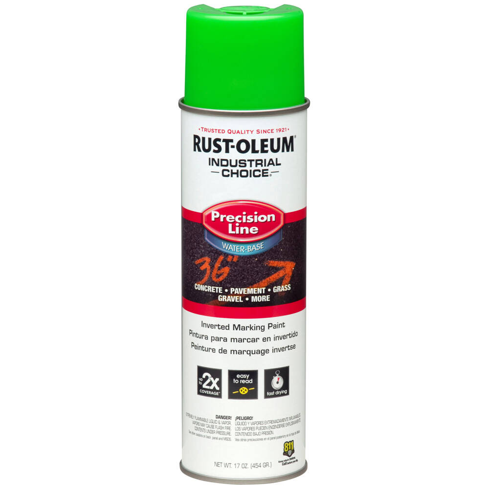 Rust-Oleum Industrial Choice M1800 System Precision Line Inverted Marking Spray Paint features a fast-drying, water-based formula that creates bold, durable marks for a variety of industries, including construction, excavation, surveying, landscaping, utility, and more.