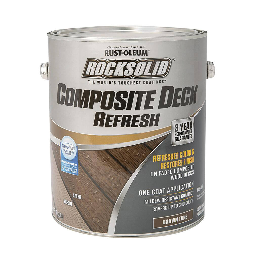 RockSolid Composite Deck Refresh Toner is an exceptional water-base exterior toner designed to refresh the color and restore the finish on faded composite wood decks. It provides protection against water damage, UV graying and mildew. It is easy to use, dries fast and cleans up quickly with water.
