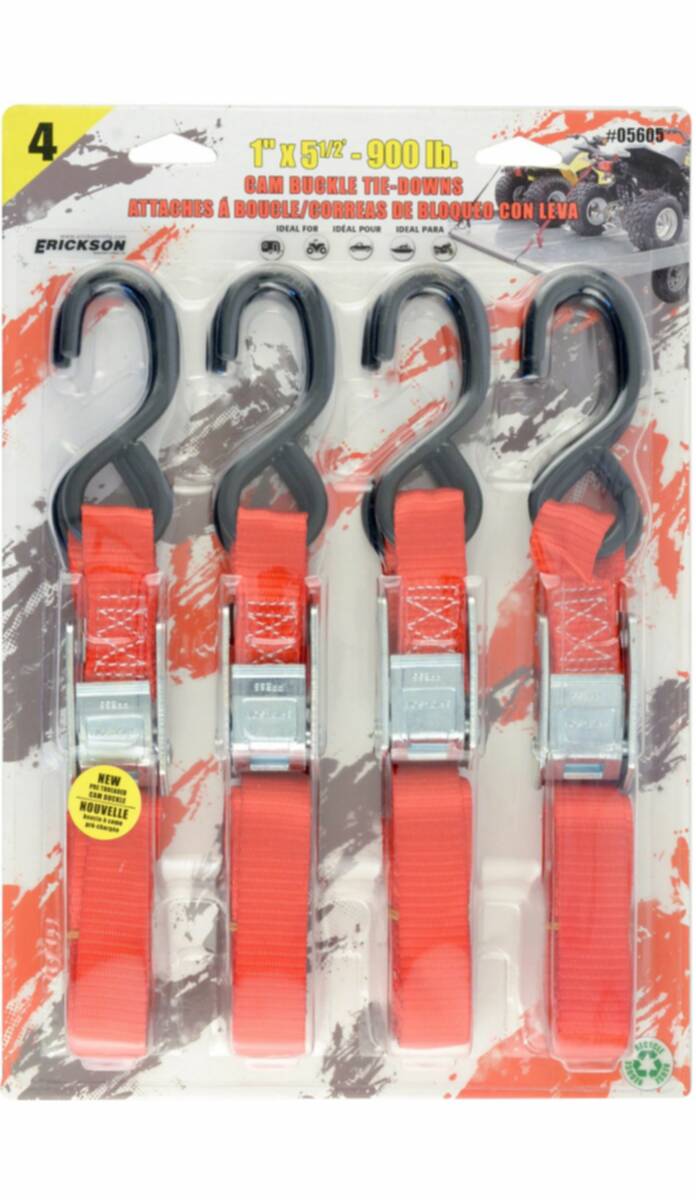 1-Inch X 5-1/2-Foot 900-Pound Red Buckle Tie-Down Straps 4-Pack