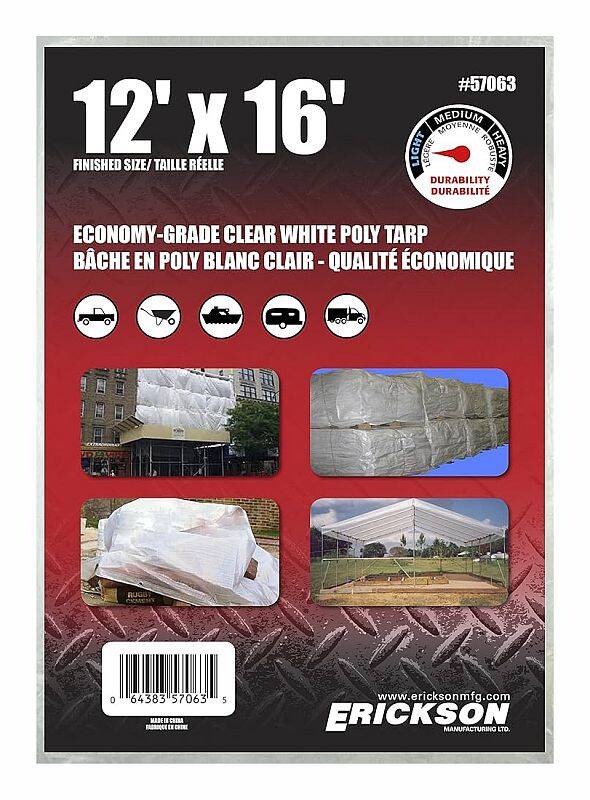 Erickson's new clear white tarps feature a 8 x 7 weave. Clear tarps, like many others, have a similar combination of uses. For a specific need, clear tarps are better for outdoor greenhouses and other canopy-like structures in which visibility from the outside is necessary.