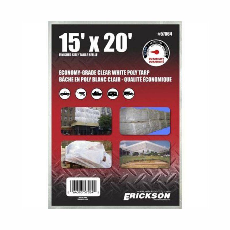 Erickson's new clear white tarps feature a 8 x 7 weave. Clear tarps, like many others, have a similar combination of uses. For a specific need, clear tarps are better for outdoor greenhouses and other canopy-like structures in which visibility from the outside is necessary.