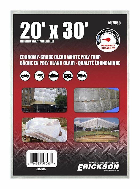 Erickson's new clear white tarps feature a 8 x 7 weave. Clear tarps, like many others, have a similar combination of uses. For a specific need, clear tarps are better for outdoor greenhouses and other canopy-like structures in which visibility from the outside is necessary.