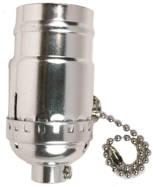 Pull Chain Lamp Socket, 3-Way, 250 V, 250 W, Nickel Housing Material