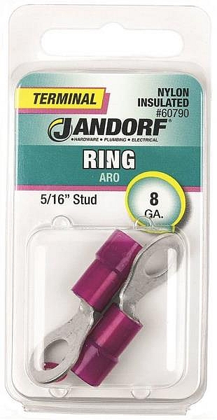8-Gauge Nylon Insulated Ring Terminal 5/16 In