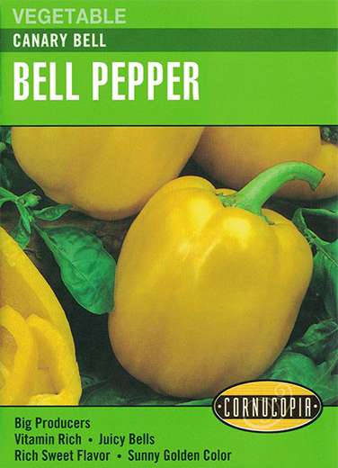 Glossy big bell peppers that start out green, then mature to rich golden-yellow. Stocky plants bear large crops of delicious, colorful peppers. Harvest 75 days from transplants. Packet plants 45 ft