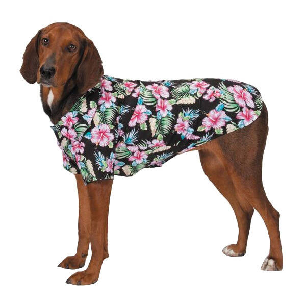 Pups can find comfort no matter where they are in our CASUAL CANINE® Hawaiian breeze camp shirt. A great dog apparel choice for walks on the beach, in dog parks or out on neighborhood jaunts. Features an all-over beach scene and classic camp shirt styling.