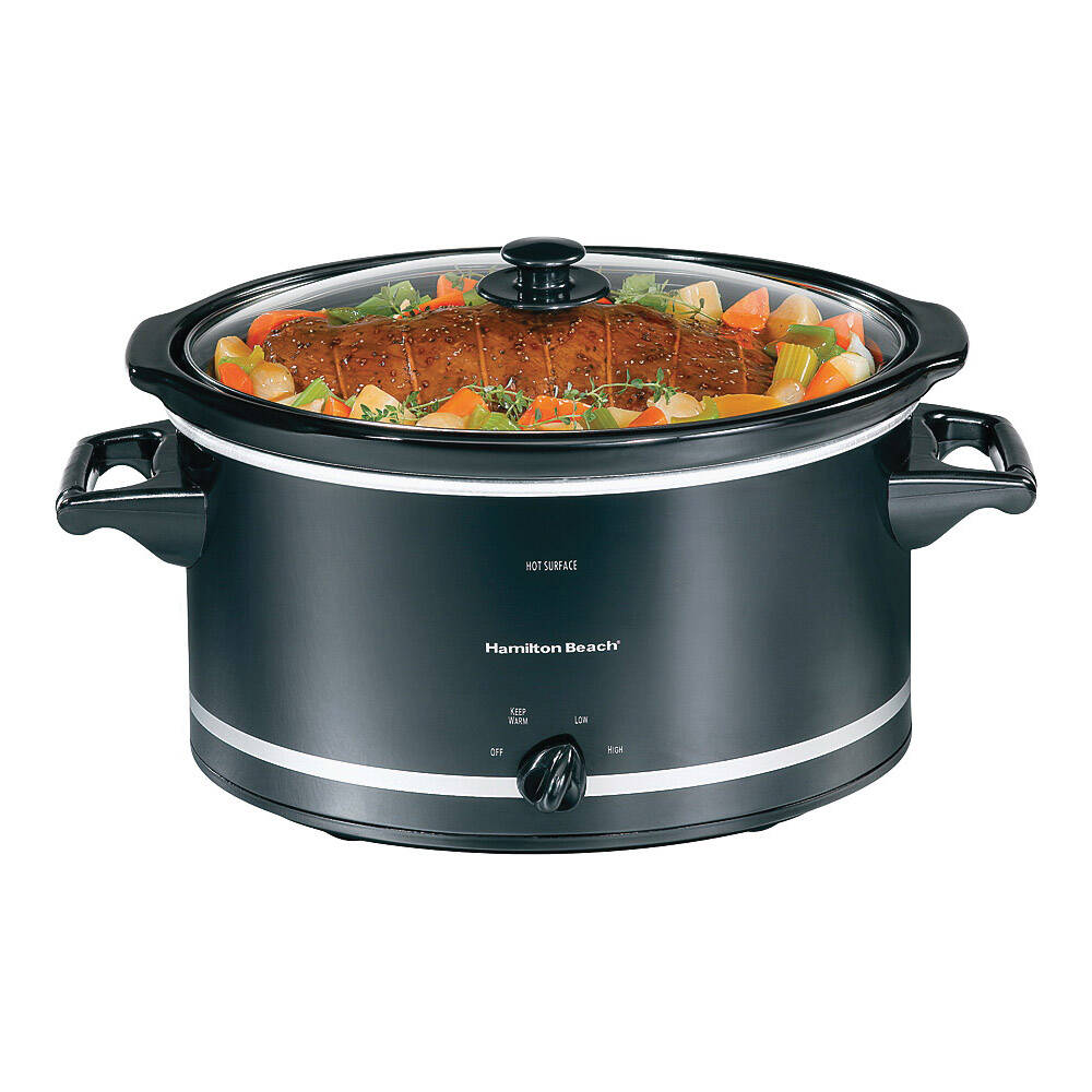 With an 8 Qt capacity, this slow cooker is ideal for families or feeding a crowd. It can easily accommodate a 6 lb roast or an 8 lb chicken. It is also ideal for bringing chili to a potluck or for sharing your latest and greatest dish with friends. It features low and high cook settings and a warm setting, ideal for buffets or when dinner ends up later than you planned. The mess-free lid rest holds the lid up securely and directs drips back into the dish. Full grip handles make it easy to carry and both the stoneware and glass lid is dishwasher-safe.