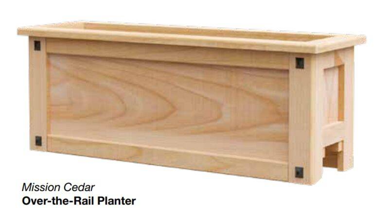 30-Inch Over-The-Rail Western Cedar Planter. This over-the-rail planter can easily be adapted to fit a 4 - 6-inch railing with a spacer. An adaptable spacer and a soil liner are included.