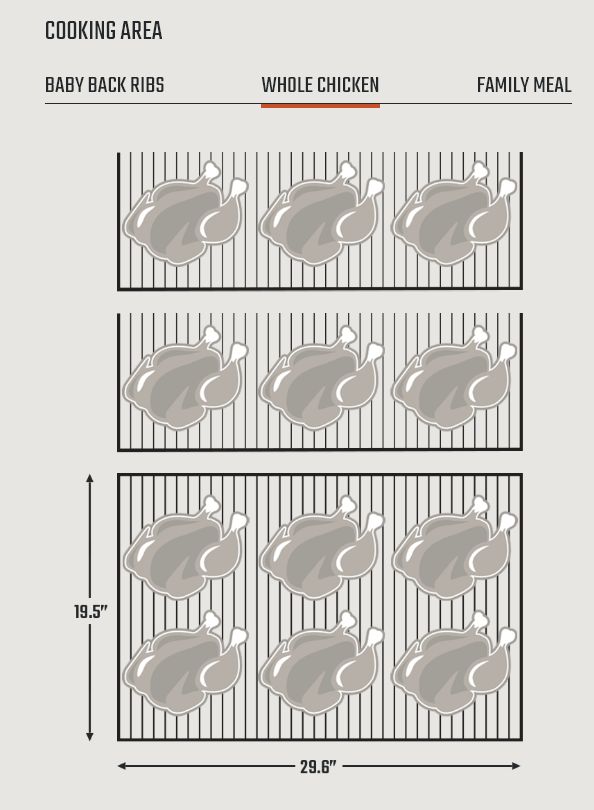 | Total Cooking Area | 1,234 sq. in. |