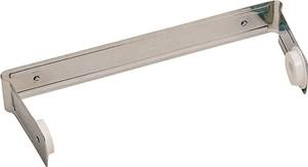 Built in spring tension holds towels securely. Easy to install. Holds regular to jumbo size rolls. Mounting hardware included. Size: 11-3/4 in x 1-1/2 in .