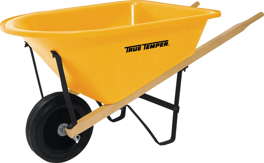 Just like Mom and Dads this little True Temper is a real wheelbarrow, sized just right for the kids. Its perfect for the young gardener who wants to help Mom and Dad around the yard. The poly tray wont rust and the solid rubber tire never goes flat.